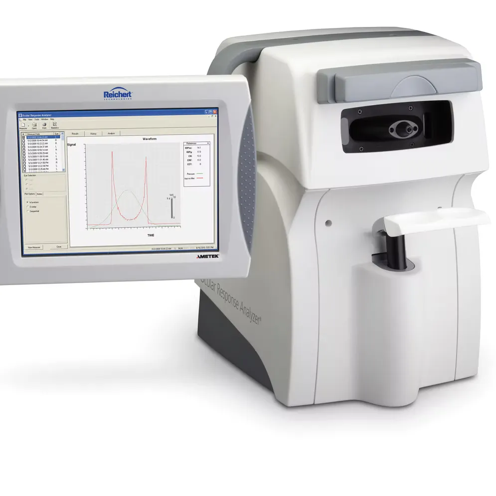 Аналізатор біомеханічних властивостей ока Ocular Response Analyzer (ORA, Reichert Inc., США) є безконтактним тонометром, який працює за принципом динамічної двобічної апланаціі (сплощення) рогівки. Реєструються два значення внутрішньоочного тиску, різницю між якими прийнято називати корнеальним гістерезисом. Цей показник використовується для вивчення в’язко-еластичних властивостей рогівки і розрахунку рогівково-компенсованого внутрішньоочного тиску (IOPcc). Алгоритм обчислення IOPcc був отриманий в ході клінічних вимірювань у пацієнтів до і після операції з лазерної корекції зору (LASIK).